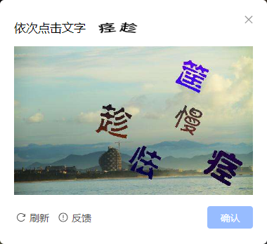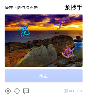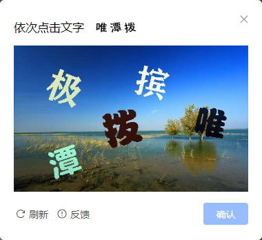 | 30112 | 定制-文字点选3(extra="je4_click") 如例图 | 低至 0.01元 | 测试 | 开发文档 | 充值 |